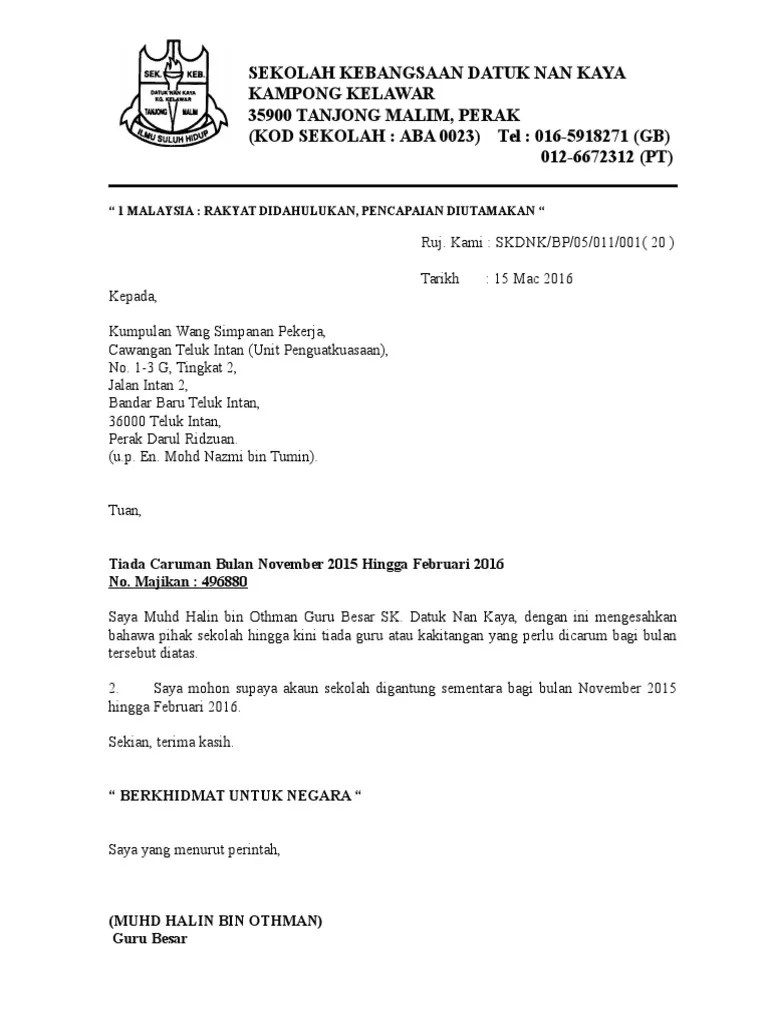 Contoh Surat Tidak Mencarum Kwsp Otosection